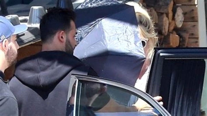 During one of the newlyweds’ pit stops, Britney hid behind an umbrella as she retreated back into the luxury whip. The iconic pop star rocked a blue and white striped top and a set of white sunglasses. She wore her trademark sandy blonde tresses up in a messy bun as she kept a low profile. Sam, meanwhile, donned a black hoodie and a pair of red shorts while he helped his new bride safely exit the store.