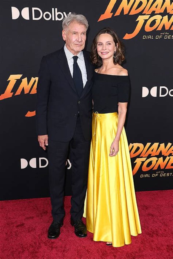 Hollywood’s golden couple has arrived! Calista Flockhart, 58, stepped onto the red carpet with her husband Harrison Ford, 80, at the premiere of his highly anticipated Indiana Jones and the Dial Of Destiny in Los Angeles on Wednesday, June 14. And the Ally McBeal actress looked absolutely radiant! Calista wore a stunning off the shoulder gown with a black top and a flowing, yellow/gold skirt for the event. She styled her famous light brown locks in curly waves above her shoulders, and accessorized elegantly with hanging hoops and strappy heels. Her screen legend husband wore a simple classic — a black suit and tie as he cuddled up with his wife for photographers at the event. In another sweet moment, they were snapped holding hands.