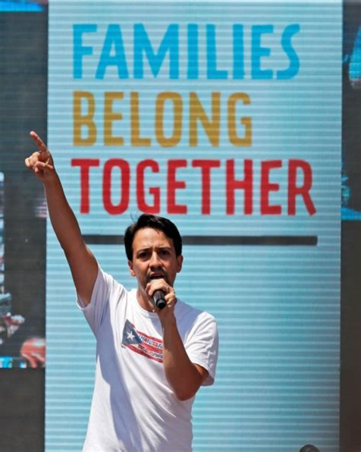 Lin-Manuel Miranda speaks during a protest of the Trump administration’s approach to illegal border crossings and separation of children from immigrant parents in Lafayette Square across from the White House, in Washington.