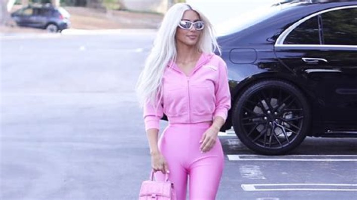 Kim Kardashian is bringing some pink into the holidays! The 42-year-old reality star and businesswoman took to Instagram on Nov. 9 to tease her new holiday collection with SKIMS and looked sexy yet sweet in a pink satin bra top and shorts set, as seen below. The top was a simple triangle bralette, and the shorts had “SKIMS” emblazoned across the front with rhinestones. Specifically, the set consists of the Woven Shine Triangle Bralette and Boxer, as explained in a post on her SKIMS Instagram page. Kim looked gorgeous with a natural makeup look and styled her bleached hair in natural-looking waves.