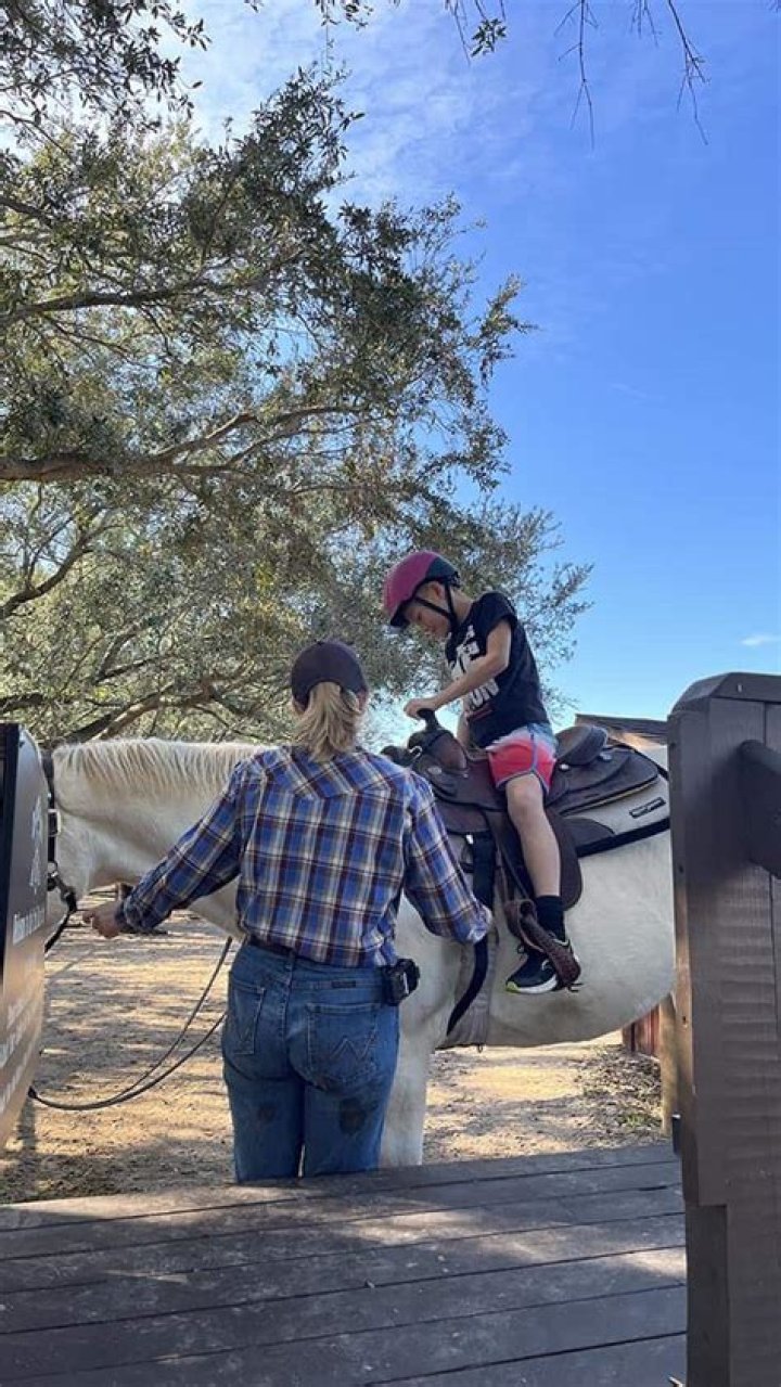 During their ride, Kourtney shared a sweet video to her Instagram captioned “beautiful morning” and showing her brood on horseback while capturing the blue sky as Kacey Musgraves‘ song “Rainbow” played. It was such a tranquil moment, and Penelope looked absolutely perfect as a pint-sized cowgirl! And her brown cowgirl boots are starting to become a staple of Penelope’s wardrobe, too.