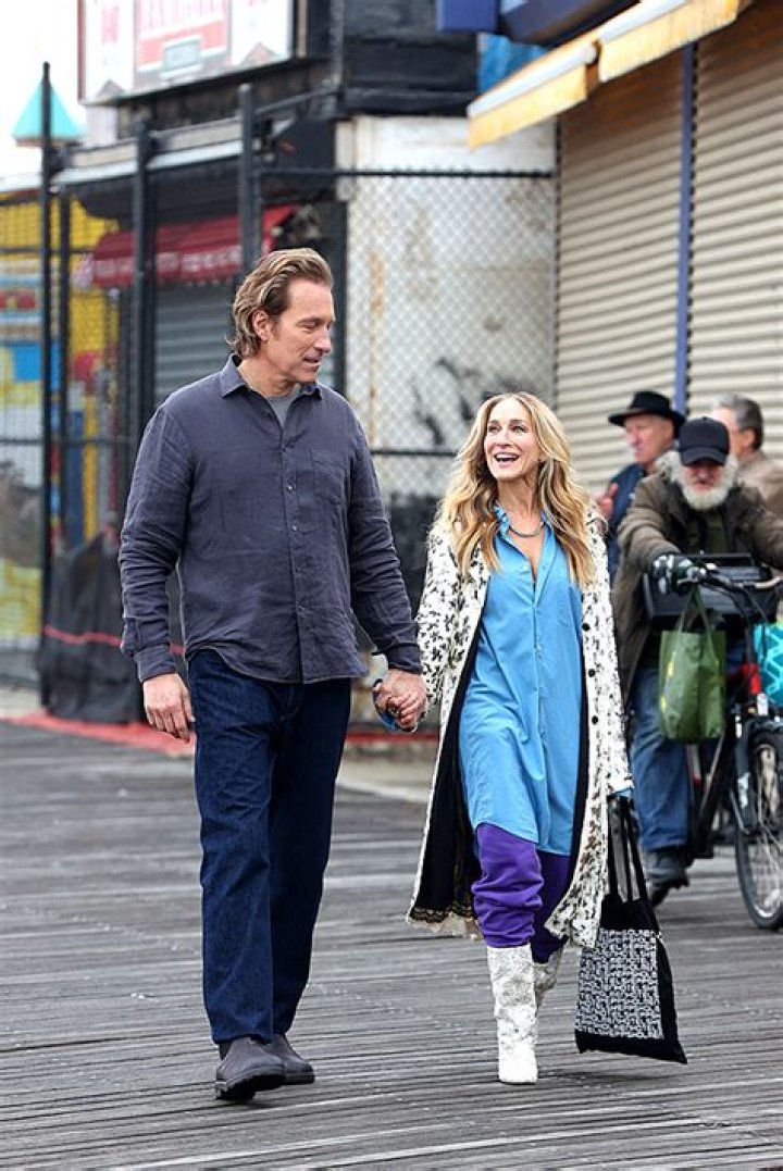 Sarah Jessica Parker and John Corbett were photographed filming scenes for season 2 of the Sex and the City revival, And Just Like That, together on Feb. 21. One month after HBO gave fans the first look at Carrie Bradshaw and Aidan Shaw back together, the stars continued to film their on-screen romance in New York City. The pair was seen in Coney Island, holding hands as they strolled down the boardwalk while in character as Carrie and Aidan. They spoke animatedly as they snapped a selfie and paused by a picnic table amidst their walk.